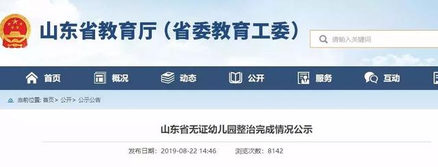 山东省教育厅发布山东省无证幼儿园整治完成情况公示