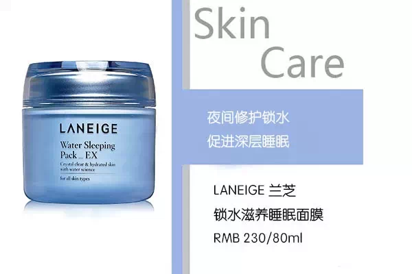 睡眠面膜可以在睡觉的时候帮助肌肤更好的锁水保湿,让肌肤在第二天肌肤变得水当当。这种类型的面膜只要均匀地涂抹一层就足够了,太多反而会导致肌肤不堪重压,从而让血液循环下降,肌肤变得更加晦暗。