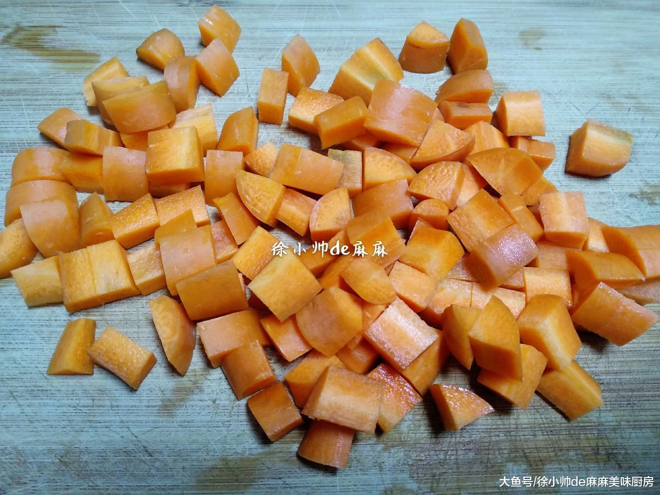 1、油量稍多一些,因为后面还有胡萝卜需要翻炒,胡萝卜是溶脂性的食材。