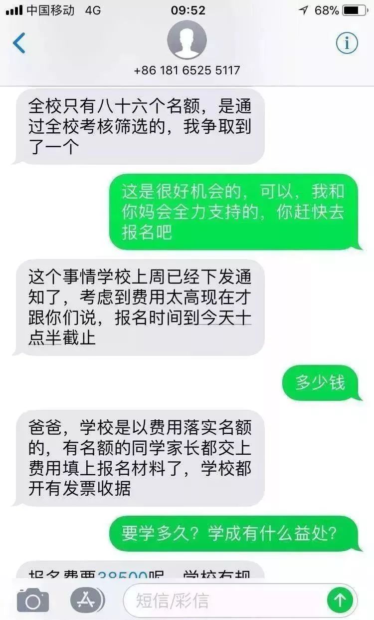 小清接受采访时说:“昨天还在考试,突然接到父亲电话,询问交学费报名的事情。当时听到我就懵了,爸爸给我看了他们的聊天记录,并告诉我给对方 汇出了38000多元钱 ,我们意识到肯定被骗了。”