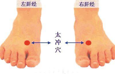 或用手指沿着足部母趾、次趾之间的夹缝向上移压,能感觉到动脉应手的位置即是太冲穴。