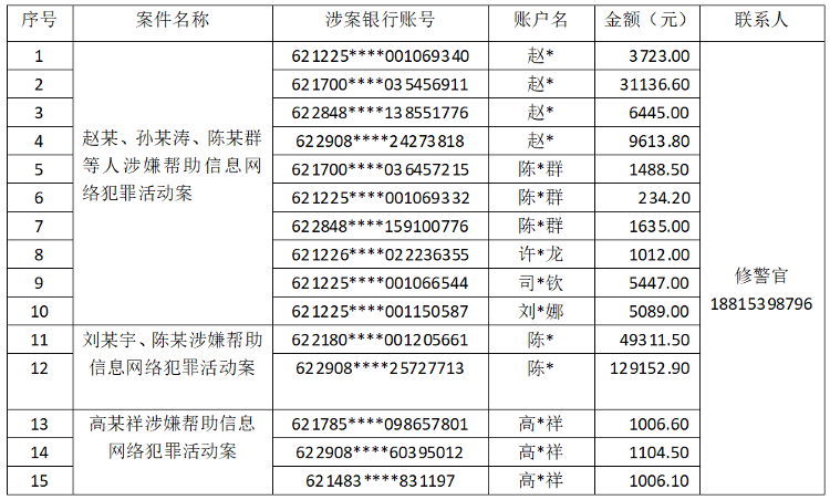 近期,我局在侦办“林某仕帮助信息网络犯罪活动罪”及关联案件过程中,依法查扣涉案资金(明细附后),根据《公安机关办理刑事案件程序规定》第233条之规定,现依法向社会发出认领公告如下: 请权利人持有