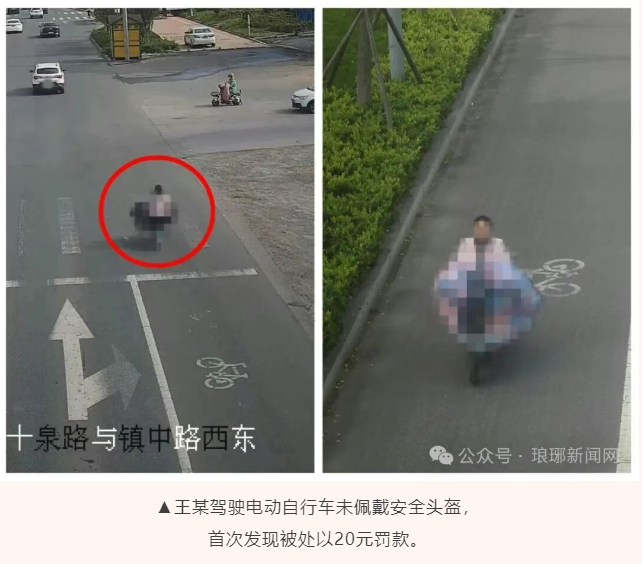 式对驾乘电动自行车未按规定佩戴安全头盔的违法行为进行处罚旨在进一步提升电动自行车驾乘人员的交通安全意识有效预防和减少道路交通事故伤害▼违法曝光交警提醒广大市民,安全头盔是驾乘电动车时遇到危险后的最后一
