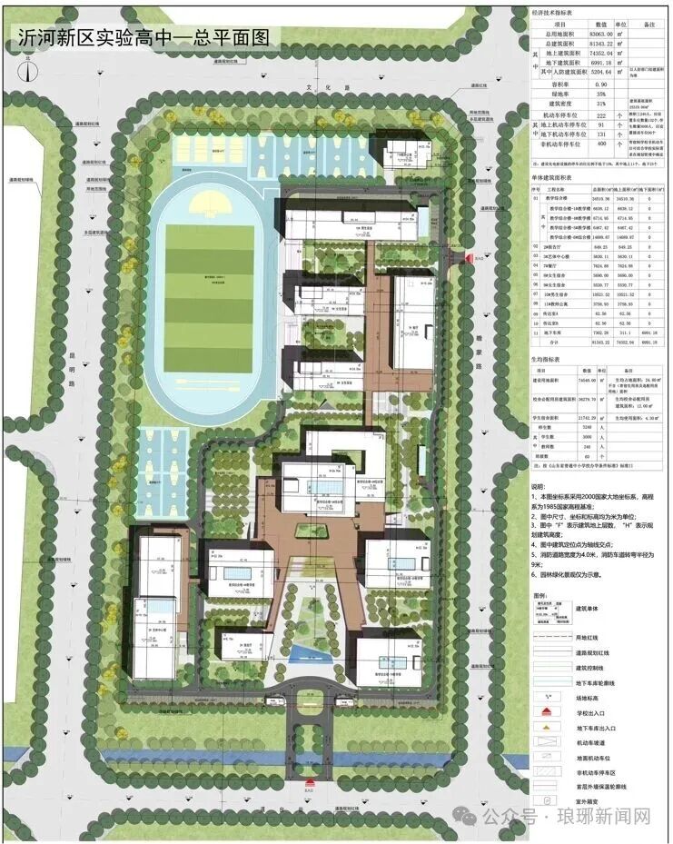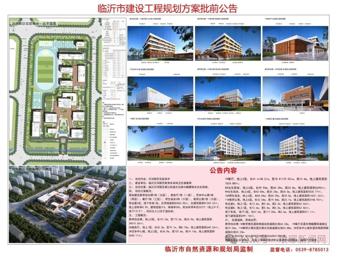 批前公告临沂沂河新区实验高中规划方案来了涉及教学楼、宿舍、艺体中心……一起来看详细内容↓↓项目内容沂河新区实验高中建设单位临沂沂河新区教育体育和卫生健康局项目位置临沂沂河新区相公街道文化路与瞻蒙路交会