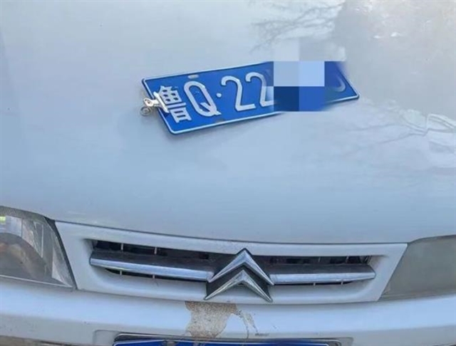 12日上午8时27分 , 交警直属一大队四中队民警巡逻至银雀山路与沂蒙路交会处西公交站牌时,发现一辆富康牌白色轿车存在异样,且前后号牌不一致。民警走近一看,只见这辆轿车悬挂着一副鲁Q22***的号牌,号牌左边用夹子固定着,将原车牌覆盖。取下夹子后,露出车辆本身的号牌——鲁QD2***。