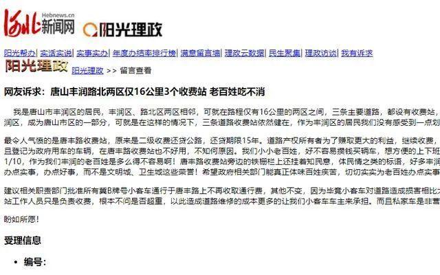 早在2014年,有丰润本地居民在河北新闻网“阳光理政”栏目留言,称“唐山丰润路北两区仅16公里3个收费站老百姓吃不消”。“我们好不容易攒钱买辆车,想方便的上下班,可一个月光是花在收费站至少200元,一个月才赚2000多块钱,光是过桥费就占了1/10。”