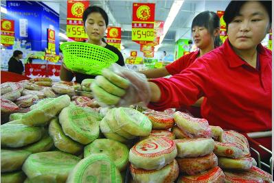 不仅大润发超市对高端礼盒月饼进货持观望态度,临沂其他多家销售商也是如此。平安路一家月饼经销店负责人丰先生告诉记者,目前每天销售散装月饼平均在300斤,但顾客很少买带包装的月饼。现在,店里是根据订单进礼盒月饼,对于礼盒月饼的进货量只能看市场需求,总起来说,礼盒包装月饼并不被看好。