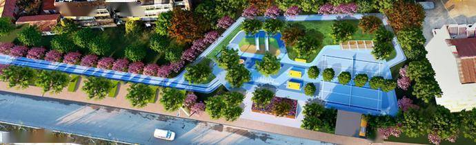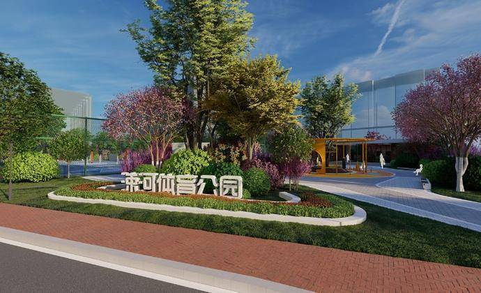 公园设计定位为趣味运动主题,设置羽毛球场、儿童乐园、乒乓球场地、生态停车场、公共卫生间等,为居民提供休闲运动场地,同时增加榉树、乌桕、白蜡、樱花、海棠等植被。
