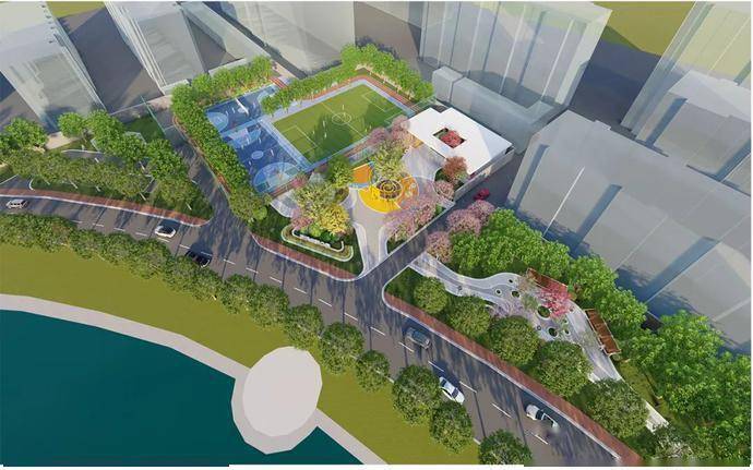 公园以活力运动为主题。设计结合现状绿地,增设篮球场、羽毛球场、五人制足球场、公厕、园林养护工具间、林荫停车场等,为周边居民及学生提供实用便利的休闲活动空间。