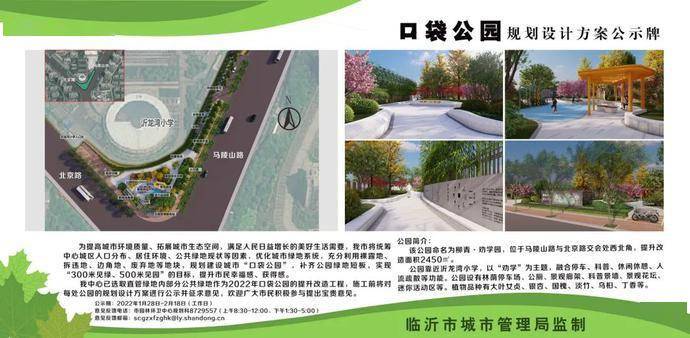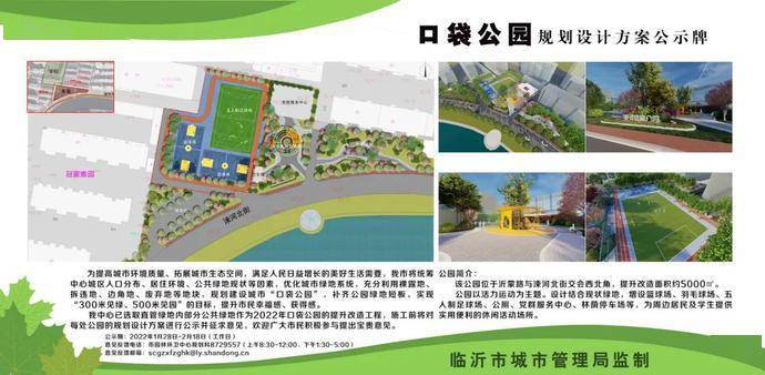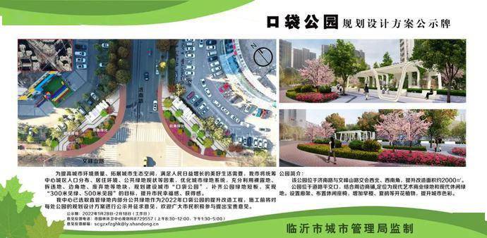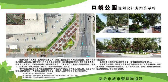 “300米见绿、500米见园”,2022年临沂五区将建设143处“口袋公园”首批新建的15处位置公布,地址和图纸让你一次看个够;