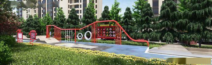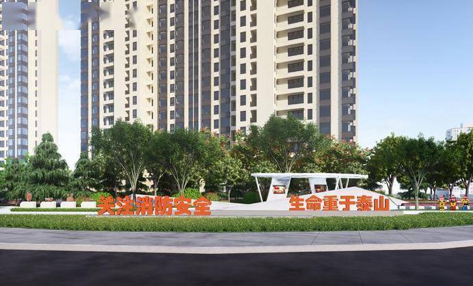 公园设计定位为消防教育主题绿地,街角设置消防文化宣传廊架、局部点缀消防主题趣味小品、消防知识牌、复合型廊架、公共卫生间等设施。场地在保留现状植物的基础上增加榉树、樱花、海棠等植物。