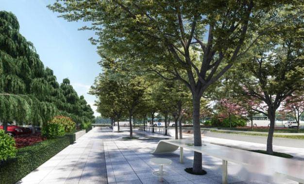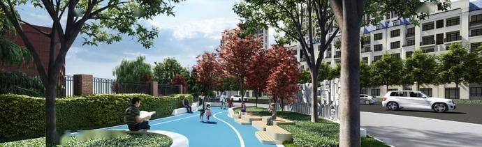 公园命名“柳青·南京园”,位于南京路与沂蒙路交会东南、西南角,提升改造面积约3.3万㎡。