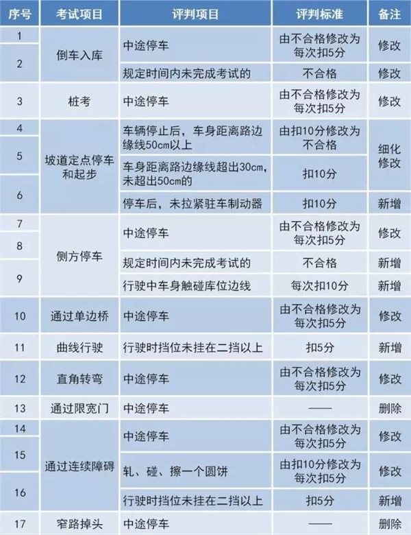 科目三道路驾驶技能考试操作和评判主要修改一览