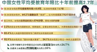 女性社会地位提高包括教育水平、就业能力、健康水平及家庭地位等多方面。记者在采访中发现,女性在受教育程度,就业人数及专业技术岗位数量等方面发生明显变化。