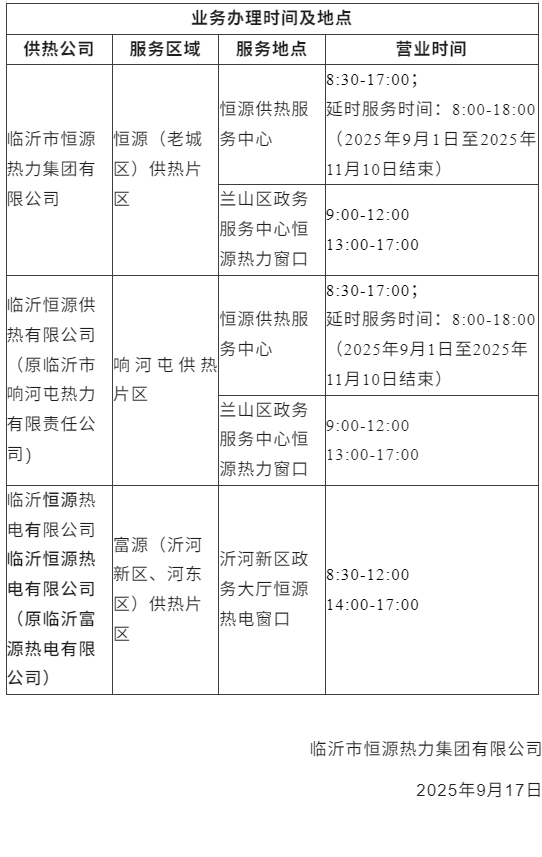 临沂三家热力公司发布2025-2026年供暖季收费通知↓↓↓临沂蓝天热力有限公司 2025-2026年供暖季收费通知尊敬的热用户:为保证今冬正常供暖,提供优质供暖服务,现将2025-2026