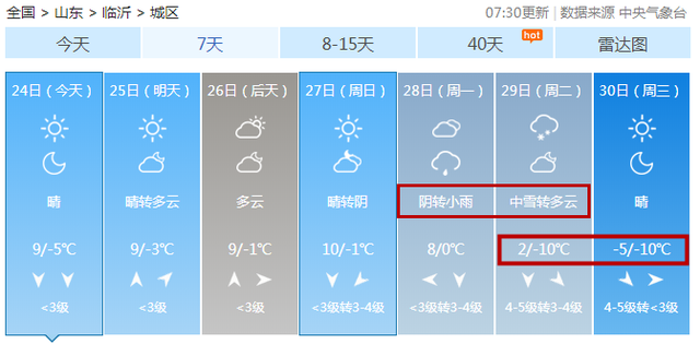 临沂又要下雪了29日临沂将迎来一场中雪最低气温-10℃,降雪过后,30日最高温只有-5℃!中雪只是“前菜”元旦假期过后还有两场雪在等着大家!阴转雨夹雪雨夹雪转雪冬季是呼吸道传染病的高发季节,也是病毒性