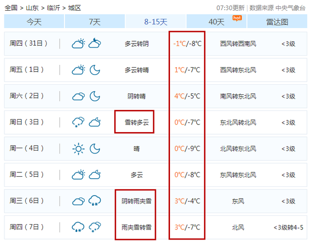 临沂将有一次大风降温天气最低气温将出现在14日或15日早晨-7~-8℃临沂气象台发布寒潮蓝色预警临沂天气预报13日夜间到14日白天,多云间晴,偏北风3~4级逐渐减弱到2~3级,气温-5~2℃;14日夜